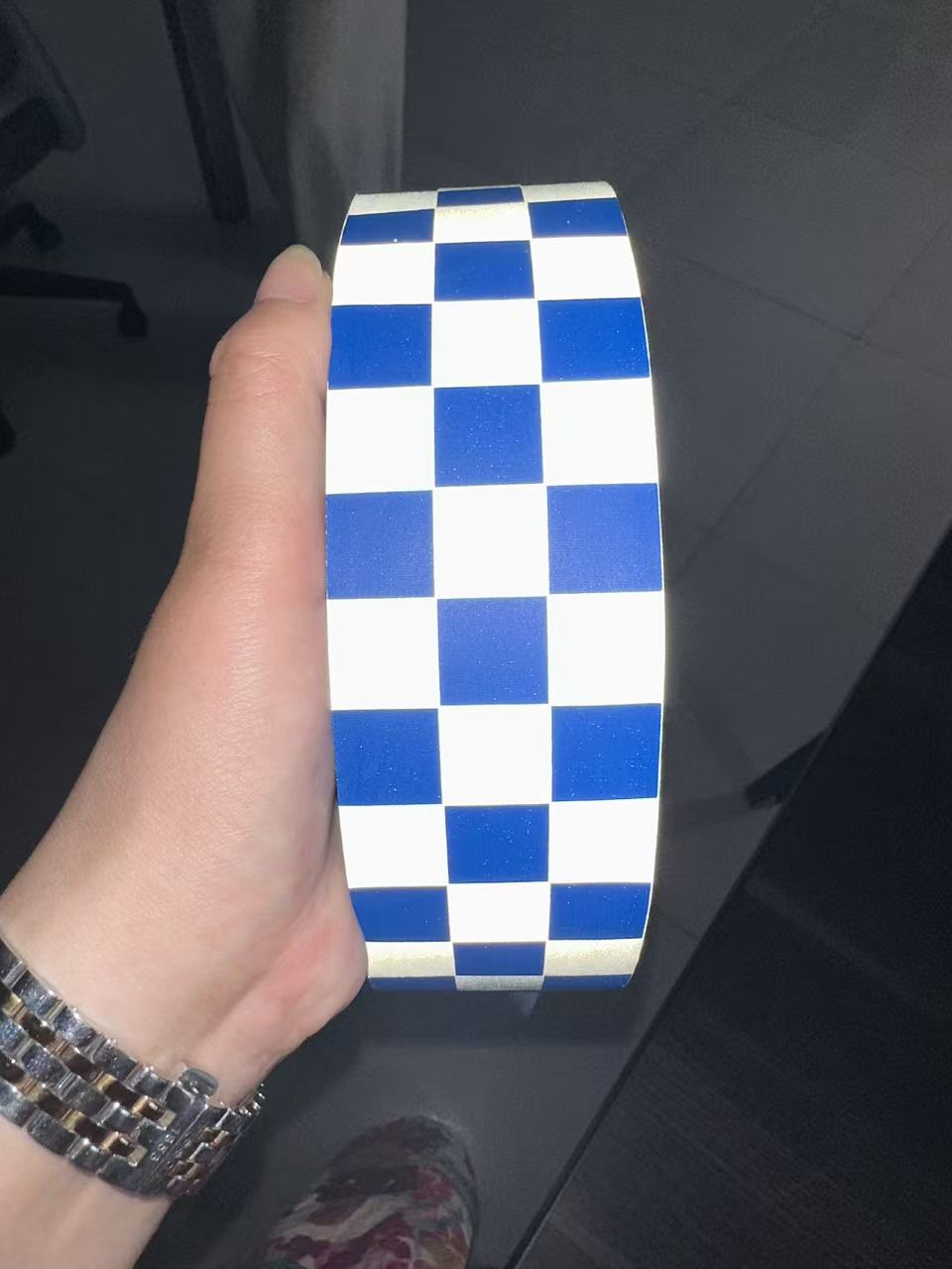 مواد و ساختار: به طور معمول از پلی استر یا پارچه الیاف مصنوعی به عنوان ماده پایه ساخته می شود، مواد بازتابنده از طریق یک فرآیند تخصصی برای تشکیل الگوی شطرنجی آبی اعمال می شود.