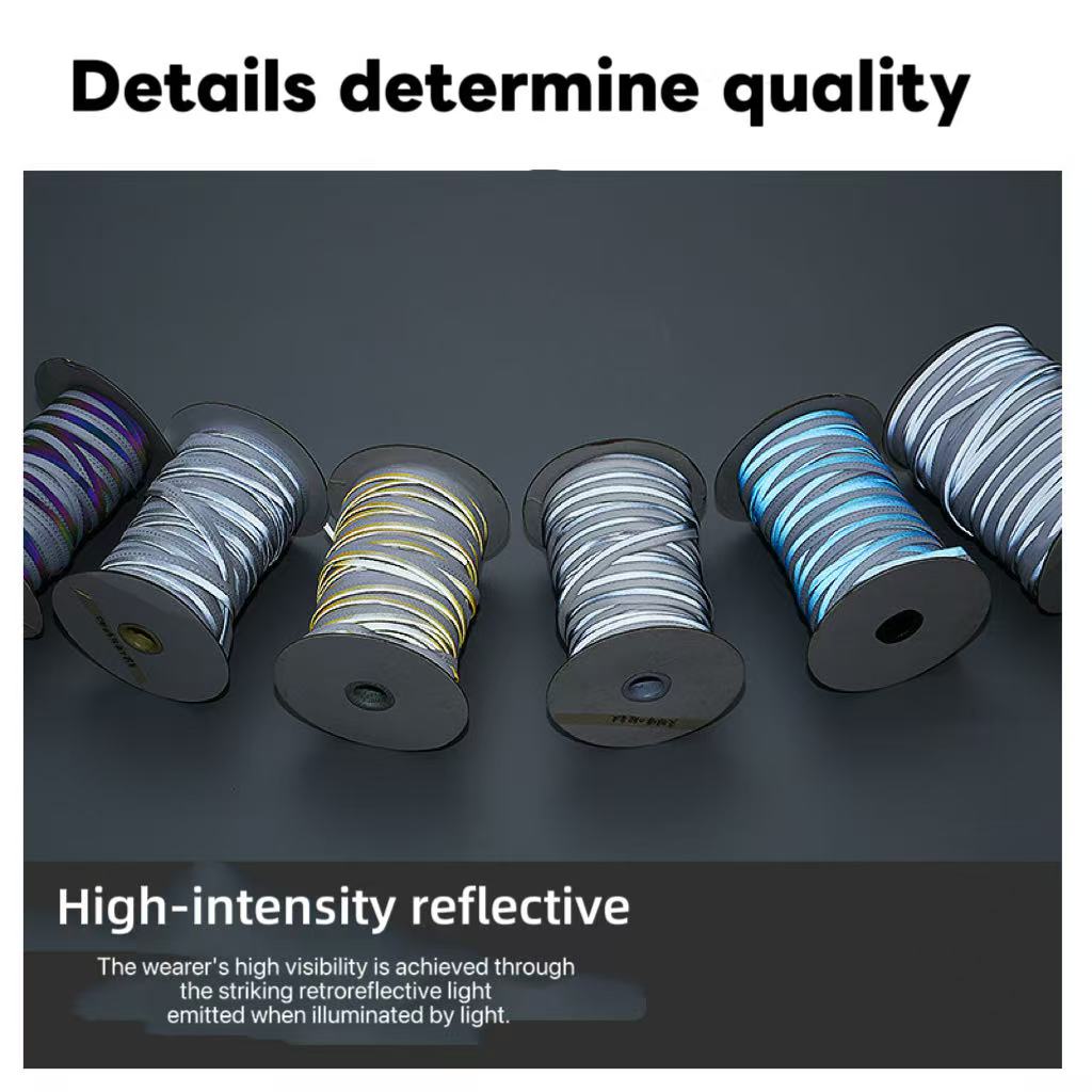 • مواد و مشخصات: مواد پایه شامل الیاف مصنوعی و پارچه TC می باشد. عرض ها بسیار متفاوت است، با گزینه های رایج 1 سانتی متر، 1.3 سانتی متر و 1.5 سانتی متر. عرض های سفارشی در صورت درخواست در دسترس هستند. رنگ‌ها متنوع هستند و نه تنها خاکستری نقره‌ای و سفید استاندارد، بلکه قرمز، زرد، آبی و سایر پارچه‌های بازتابنده رنگی را نیز به نمایش می‌گذارند.